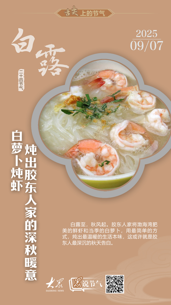 白露至,秋風(fēng)起。在膠東人家的灶臺上,一鍋滾燙的白蘿卜燉蝦,是對抗“秋燥”的溫柔武器。